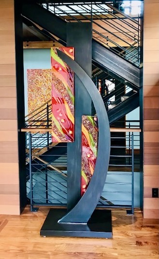 Robin and Chris Larson's collaborative work combines the magical transparency of glass and the vibrant strength of metal in free-standing sculptures, tables, and wall art.